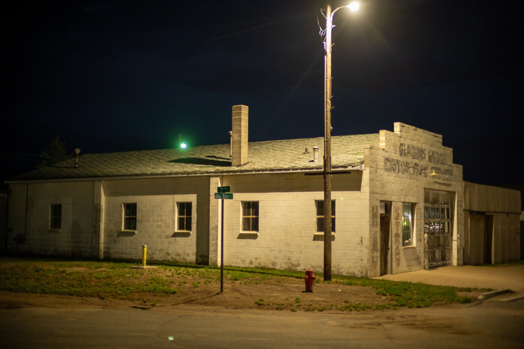 I stopped at woods landing and captured the above image on my way out of the valley after fighting a few moths out of the Land Rover on the way there. The drive to town is about 35 minutes and rife with deer and possibly moose so I took my time and watched out for furry buddies. I didn’t even have an idea where I would find stuff to shoot in Laramie even though I have spent my fair share of time in town. Night time photography is difficult in you have to have lights for the most part to capture something. I noticed this butcher block sign lit up an extraordinary amount on the way to the valley so I had planned on stopping back here on the way back through.
