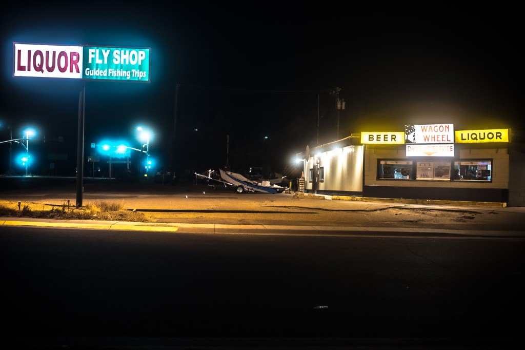 If there was a setting I didn’t know what to do with this night it would be this one. There is so much going on. I feel like if the liquor / fly shop sign was a bit closer to the store it would be easier but it was difficult to figure out how to get all of the aspects into frame without including a lot of the street and the big void between the store and the sign. Maybe I will learn in the future not to do that to just pass on it or take them as two stand alone pictures. I still released the shutter.